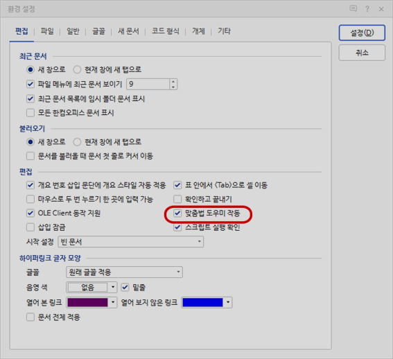 한글 문서 작성 하실 때, 띄어쓰기나 맞춤법을 잘못 입력했을 때